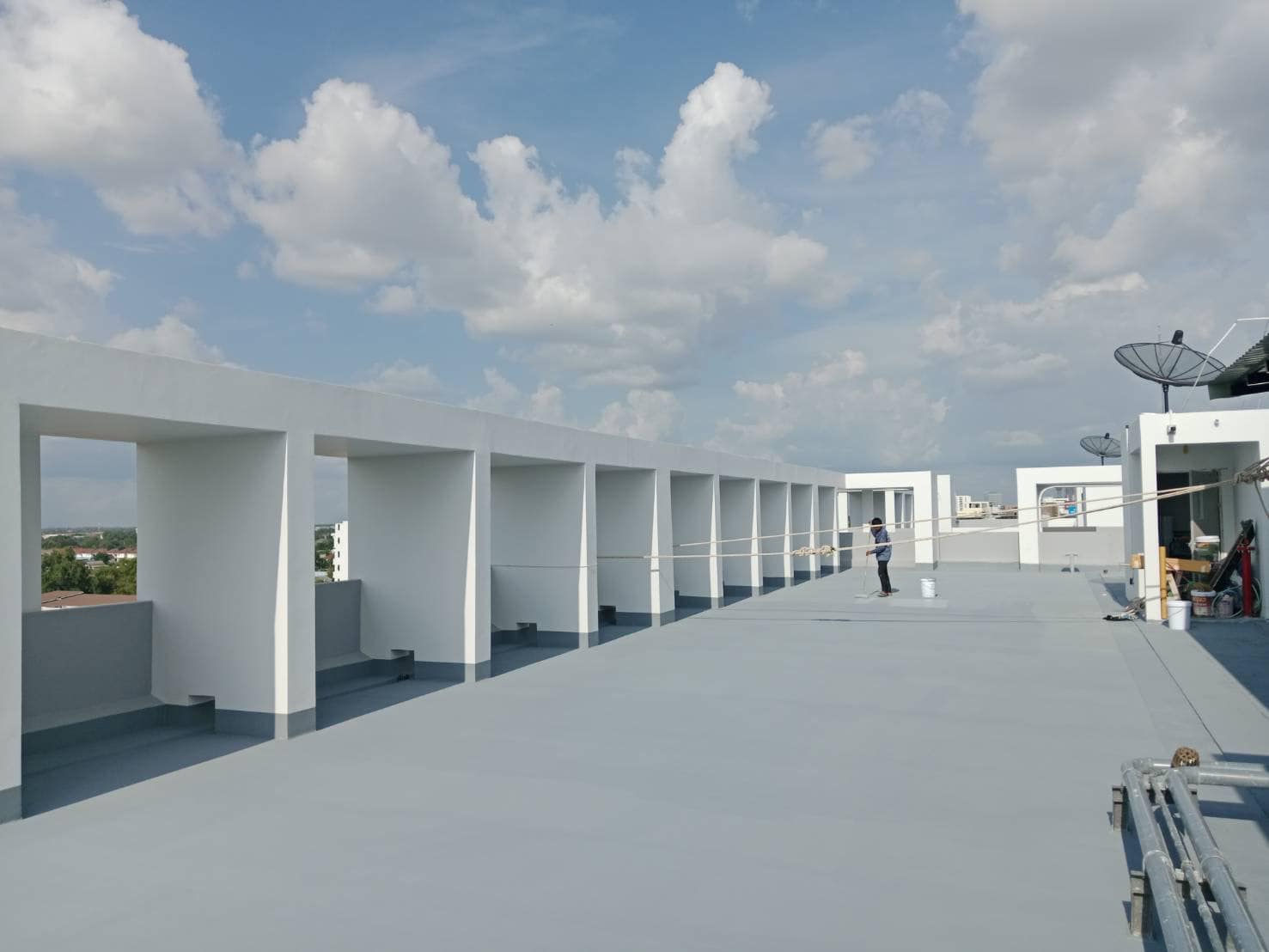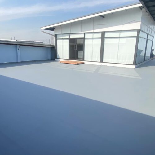 งานพื้นกันซึม Pu Waterproof เป็นกันซึมชนิดโพลียูเรเทนสูตรน้ำ มีความยืดหยุ่นสูง ไม่จำเป็นต้องติดตั้งเส้นใยไฟเบอร์เหมาะสำหรับใช้งานหลังคาคอนกรีต
